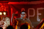 Kapelle Petra, das sind Opa, Ficken Schmidt, Siepe und die Gazelle. Ihnen eilt ein Ruf als hervorragende Liveband voraus und so verwundert es kaum, dass es für die Meisten im Club heute nicht das erste Konzert des Quartetts ist. Nach kürzester Zeit, es braucht nicht mal drei Songs, bewegt sich das Stereo bis in die letzte Reihe. Ob es daran liegt, dass nach eigener Aussage die meisten Zuschauer:innen morgen frei haben? Wer nicht so proaktiv geplant hat, dem schenkt der Capo Gazelle gerne einen Urlaubstag für den Kater danach, einfach beim Chef einreichen, geht in jedem Fall klar!